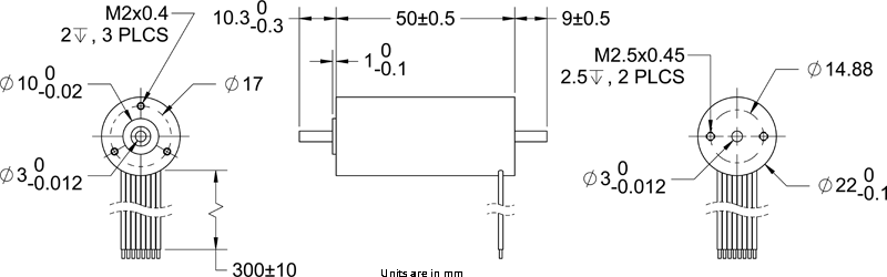 The BLU09 Series Brushless DC Motors come in a compact package with high power density. These motors are cost effective solutions to many velocity control applications. With its small footprint, it is great for compact applications. These motors are great for your next high speed application. The rotor has been balanced to help achieve minimal vibrations. Spinning near 40,000 RPM's, ball bearings have been chosen with care to ensure long operation times. We can also customize the windings to perfectly match your voltage, current, and maximum operating speed. Special shaft modifications, cables and connectors are also available upon request.