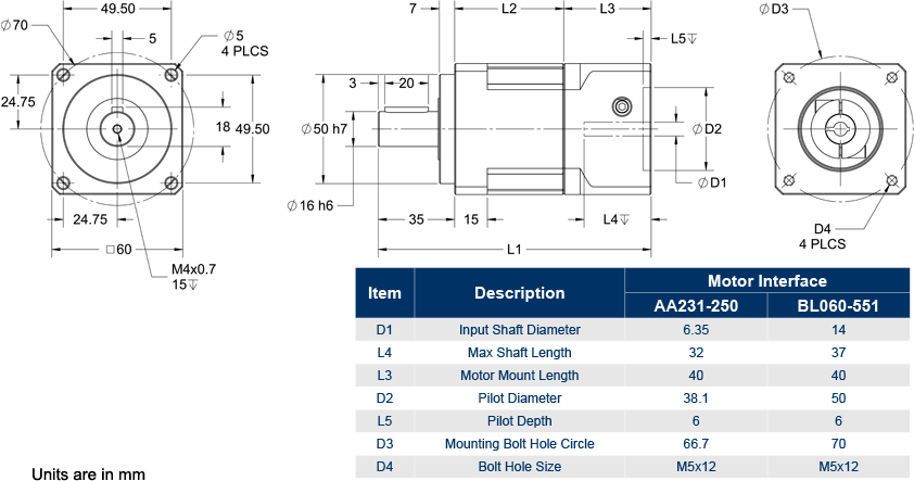 For custom input dimensions, or non-Anaheim Automation motors, fill out our Gearbox Mounting Form and submit it to our Sales Engineers at [email protected]