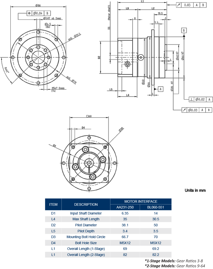 For custom input dimensions, or non-Anaheim Automation motors, fill out our Gearbox Mounting Form and submit it to our Sales Engineers at [email protected]