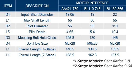For custom input dimensions, or non-Anaheim Automation motors, fill out our Gearbox Mounting Form and submit it to our Sales Engineers at [email protected]