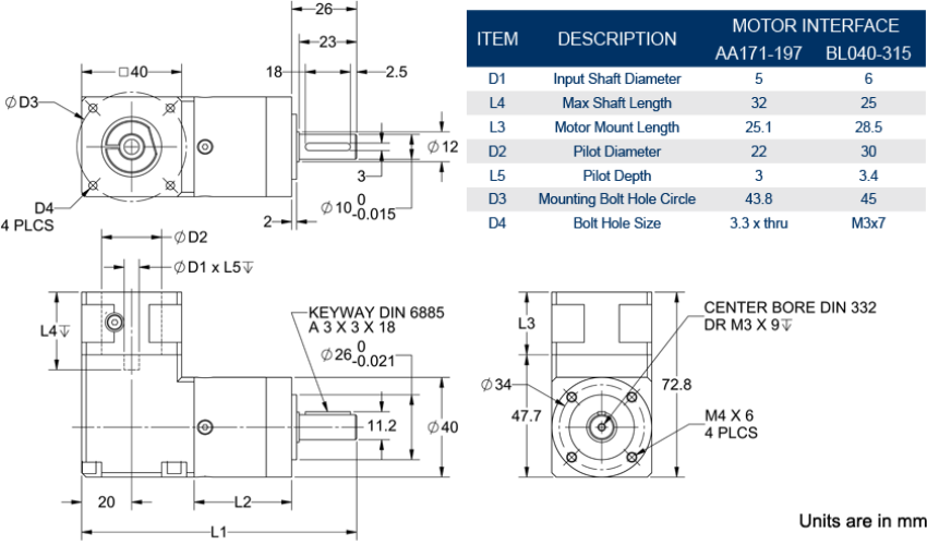 For custom input dimensions, or non-Anaheim Automation motors, fill out our Gearbox Mounting Form and submit it to our Sales Engineers at [email protected]