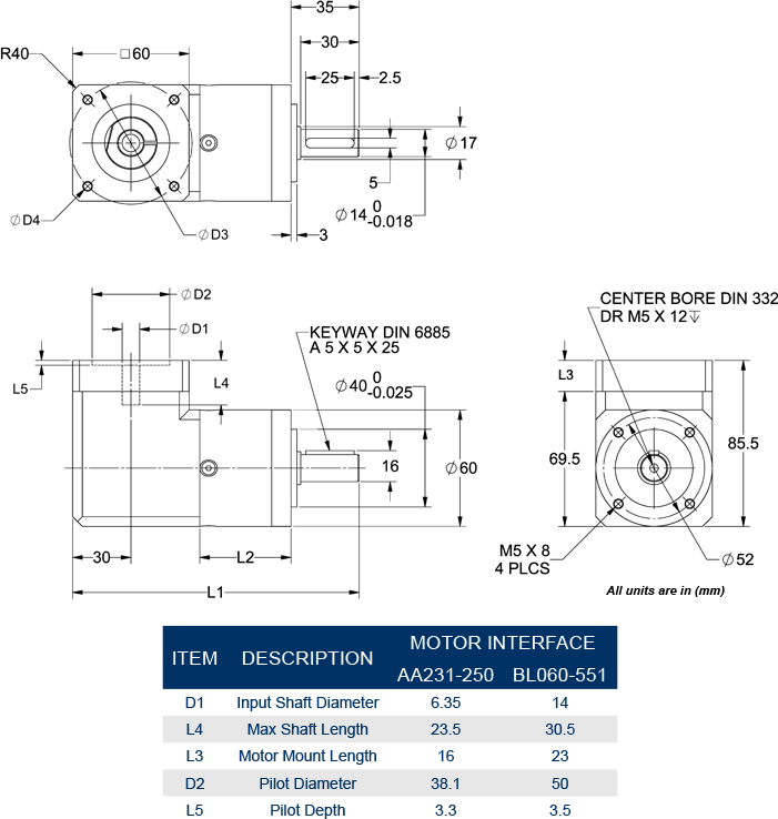 For custom input dimensions, or non-Anaheim Automation motors, fill out our Gearbox Mounting Form and submit it to our Sales Engineers at [email protected]