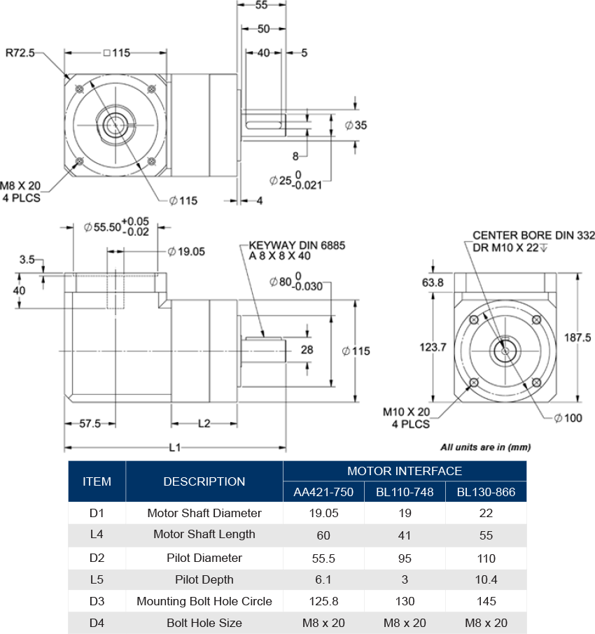 For custom input dimensions, or non-Anaheim Automation motors, fill out our Gearbox Mounting Form and submit it to our Sales Engineers at [email protected]