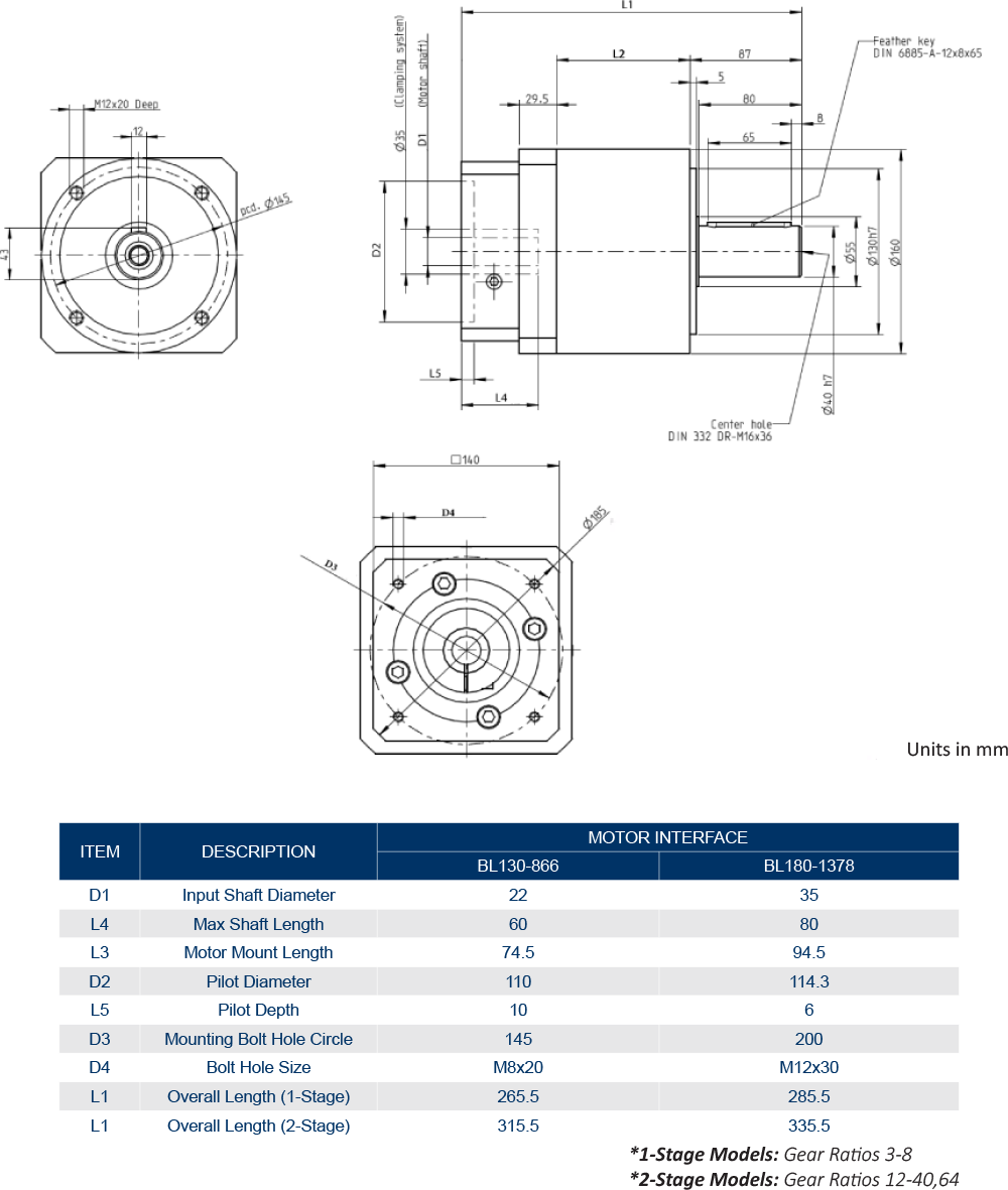 The BL130 and BL180 have replaced the old EM130 and EM180 designations. All dimensions remain unchanged.