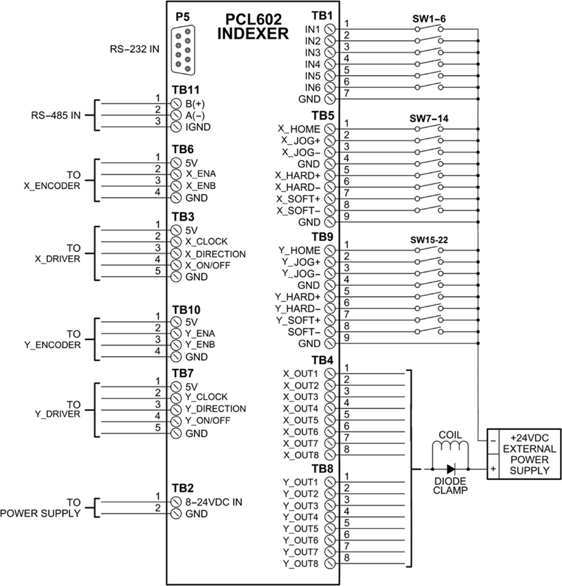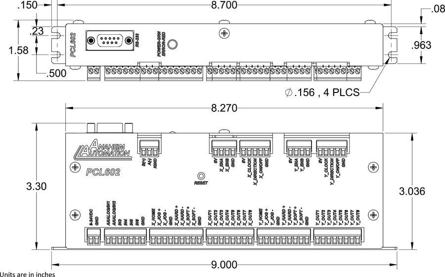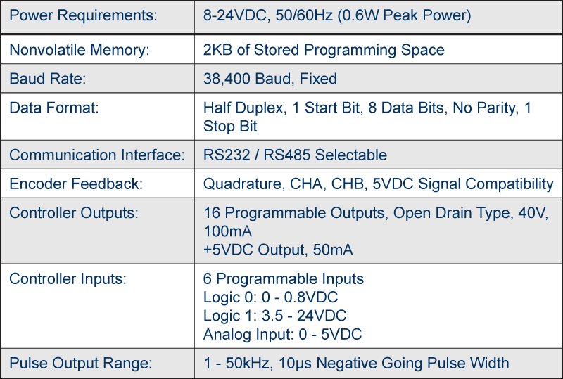 The PCL602 is a dual-axis step motor controller containing 2 Kbytes of nonvolatile stored programming space and quadrature encoder feedback. This device provides flexible and independent control of stepper motors from computers or any machine controller with a RS232/RS485 port. More specifically, the PCL602 presents an easy way to implement motion systems requiring two axes and the precision that can be achieved on each axis through the use of encoder feedback.